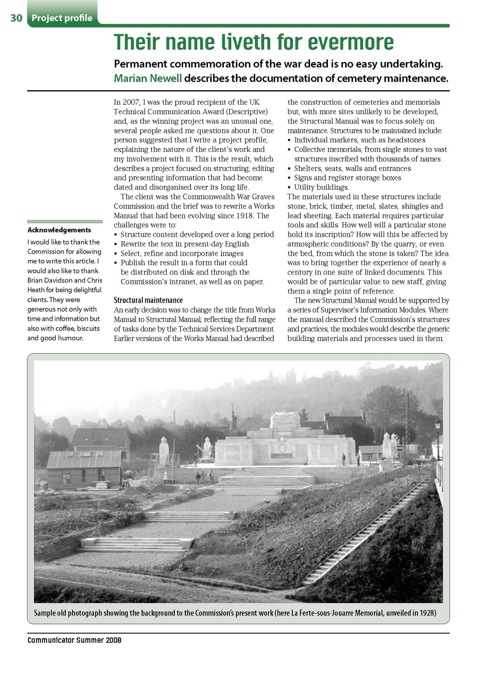 Not enjoying office environments much, I became a freelance and that enabled me to study part-time for an MA in Technical Communication. I worked through my own limited company for about twenty years, having some good long-term relationships with appreciative clients. Favourite projects included documentation for banknote sorting machines and war cemetery maintenance.