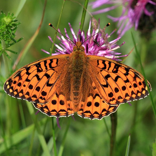 Flight period: late May to mid-July (overlapping but later than Pearl-bordred Fritillary)
