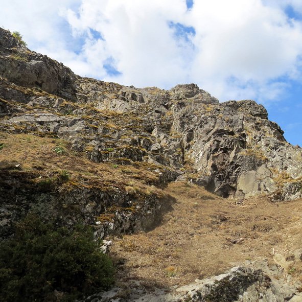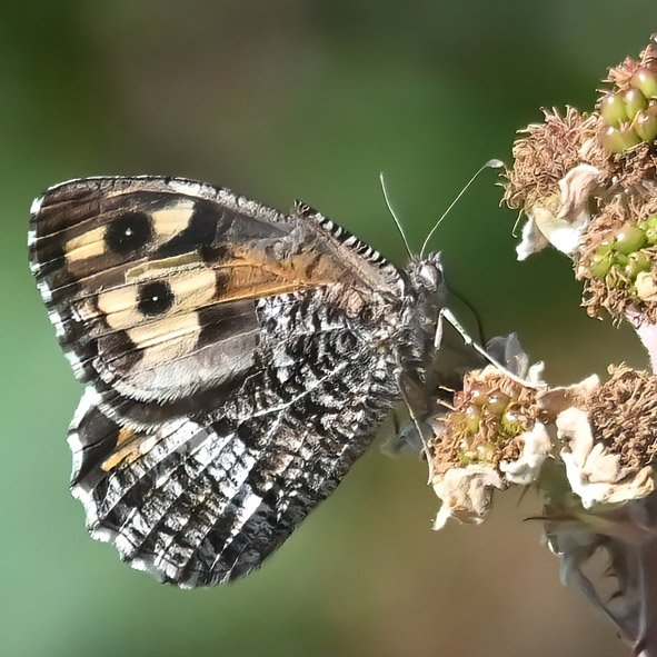 Around the Long Mynd, residents have reported Grayling butterflies regularly nectaring in their garden. One of the reasons for this may be a shortage of nectar sources on the exposed slopes where they breed, as they are largely dependent on heather being in flower. Prior to 2025, only three small populations of Grayling butterflies were known to exist on the Long Mynd. However, in 2025, following the advice of Richard Bullock from the Oswestry and Borders Butterfly Group who has been studying Graylings on the Welsh/English border, we targeted searches on south/south-east facing slopes close to woodland and found a new colony within ten minutes. This rocky outcrop near The Burway has been christened ‘Grayling Rock’. Proximity to woodland may offer both shelter and access to bramble flowers, which we know to be another favoured nectar source. These findings suggest there may be more undiscovered colonies on the Long Mynd and we need your help to find them.