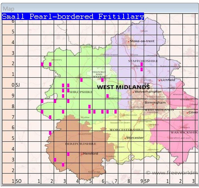 Cannock Chase (Staffordshire), South Shropshire Hills, Llanymynech (Shropshire-Welsh border), Wyre Forest (Worcestershire).