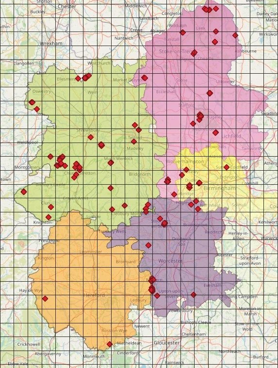Cannock Chase (Staffordshire), Malvern Hills (Worcestershire), Stiperstones and Wem Moss (Shropshire), and Fenn’s, Whixall & Bettisfield Mosses National Nature Reserve (England-Wales border).
