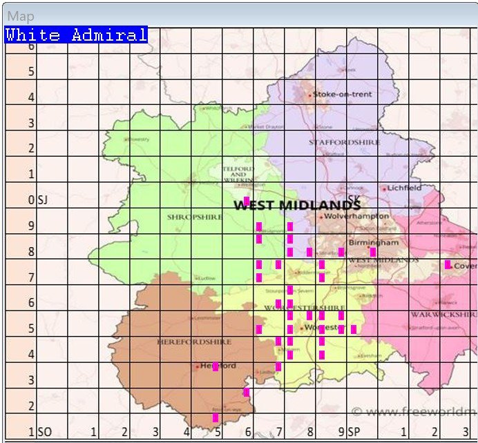Stronghold Worcestershire with scattered colonies elsewhere. Range expanding. Population trend 10 years to 2016 – decreasing.